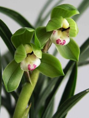 特征:春兰矮种荷瓣。外三瓣短圆,收根放角,紧边。馨口式捧,大圆舌。花形圆整小巧,花品清秀精致,小花矮草十分相配。草立叶,叶梢钝,叶柄紧细,叶面光滑。此花抗逆性特强,健草健花,耐肥,不易患病,为春兰中最小品种,惹人喜爱。