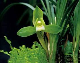 特征:外三瓣圆大放角,长脚收根。猫耳捧,大卷舌。花色翠色,舌全白,苞叶绿。叶阔呈半垂形,健花易繁殖。除捧心外,与魅荷素极相似。