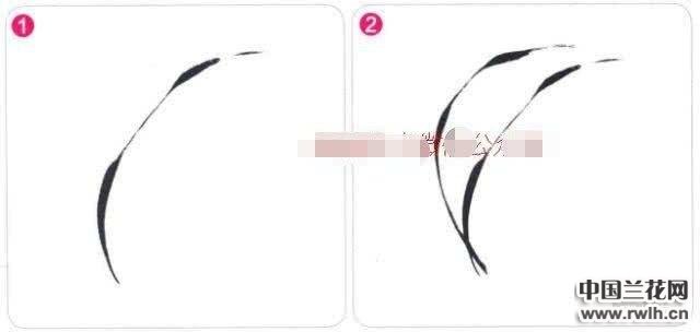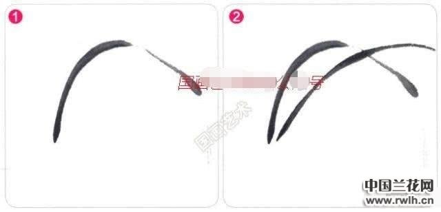2.画兰叶时,第二笔与第一笔交凤眼,用笔要有力度,提笔、收笔要稳当,叶子呈现钉头、鼠尾、螳螂肚的形态。